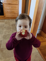 She can make fun shapes in her fruit: smiley oranges and bunny apples: